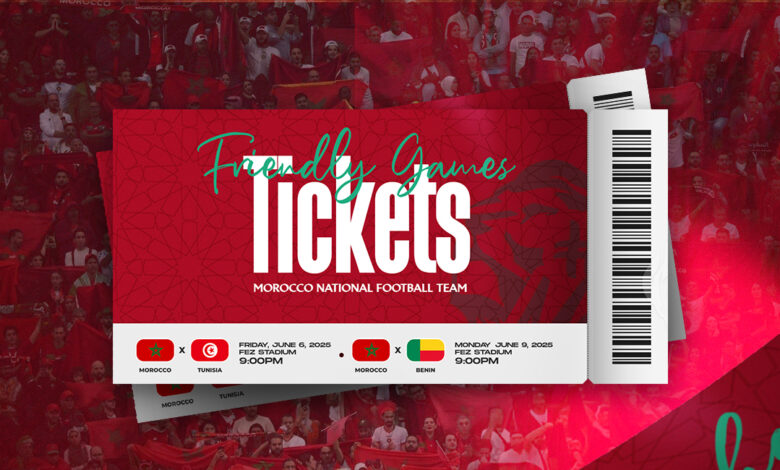 أعلنت اللجنة المنظمة للمباراتين الوديتين اللتين ستجمعان المنتخب الوطني المغربي بنظيريه التونسي والبنيني، والمقرر إقامتهما يومي الجمعة 6 يونيو والاثنين 9 يونيو 2025 على أرضية الملعب الكبير بفاس، عن انطلاق عملية بيع التذاكر الخاصة بهاتين المواجهتين ابتداءً من اليوم السبت 31 ماي 2025، على الساعة 11 صباحًا.