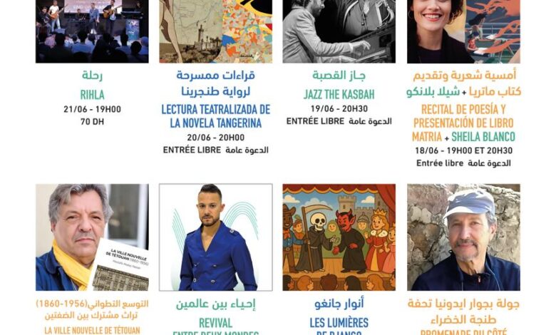 أما يوم الجمعة 20 يونيو على الساعة الثامنة مساءً، فسيكون للجمهور موعد استثناءي مع قراءة ممسرحية لرواية “طنجيرينا” للكاتب الإسباني خابيير بالينثويلا، مع الترجمة العربية للشاعر العربي غجو، قراءة باللغتين العربية والإسبانية يقدمها تلميذات وتلاميذ المعهد الإسباني سيبيرو أوتشوا، في احتفاء بطنجة كجسر ثقافي بين الضفتين.