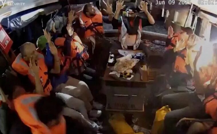 القوات الاسرائيلية تعتقل كل من كان على سفينة مادلين في ساعات الفجر من صباح اليوم، وتجري معهم تحقيقات مطولة .