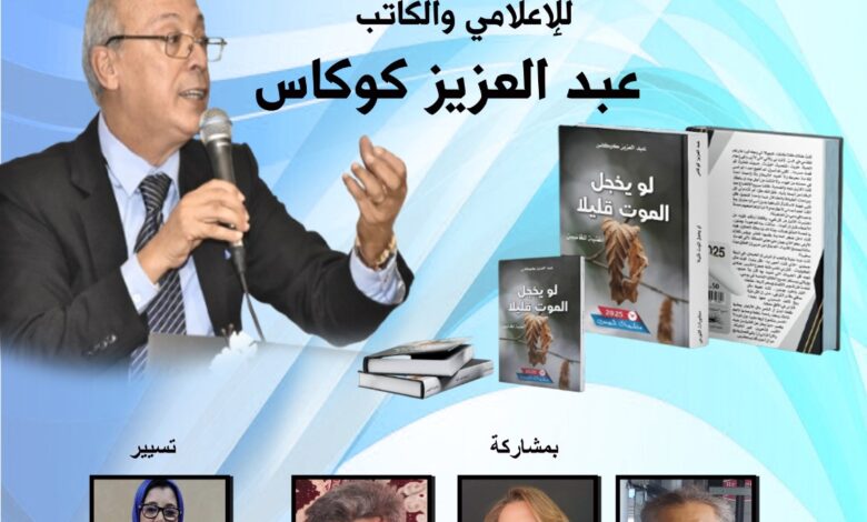 إستمرارا لأنشطتها الثقافية والإشعاعية ، تنظم شبكة المقاهي الثقافية بالمغرب – تنسيقية مكناس – حفل تقديم وتوقيع كتاب ” لو يخجل الموت قليلا ” للإعلامي والكاتب عبدالعزيز كوكاس .