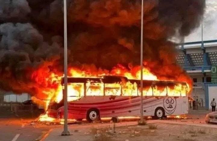ولم تتوقف الأحداث عند حدود الملعب، بل امتدت أعمال الشغب إلى محيطه، حيث أقدم مسلحون على إطلاق الرصاص الحي على جماهير الأهلي خارج أسوار الملعب. وفي تطور خطير آخر، تم إضرام النار في حافلة نادي الاتحاد الليبي، مما يؤكد مدى خطورة الأحداث وتصاعدها إلى مستوى تجاوز حدود المنافسة الرياضية ليصل إلى تهديد الأمن العام.