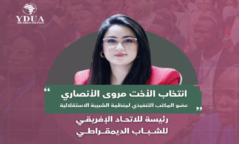 تم اليوم الخميس بالرباط، انتخاب مروى الأنصاري، عضو المكتب التنفيذي لـالشبيبة الاستقلالية، رئيسة لـالاتحاد الإفريقي للشباب الديمقراطي، وذلك خلال المؤتمر الرابع للاتحاد الذي تحتضنه المملكة.