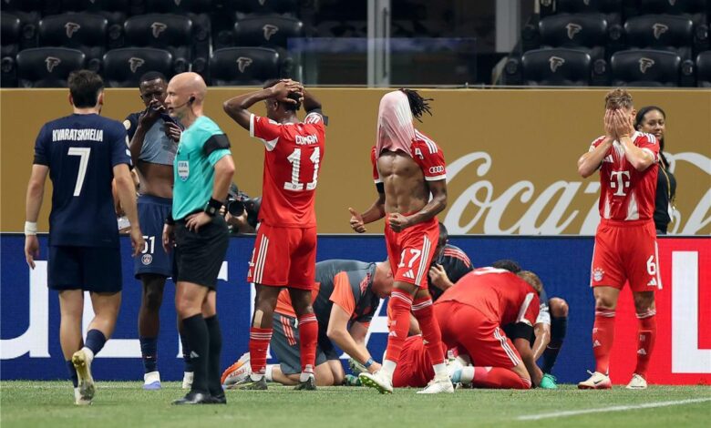 عاش جمهور كرة القدم لحظات قلق بالغة خلال الشوط الأول من مباراة ربع نهائي كأس العالم للأندية بين بايرن ميونيخ و باريس سان جيرمان، حيث تعرض نجم بايرن الشاب جمال موسيالا لإصابة مروعة. فقبل ثوانٍ معدودة من نهاية الشوط الأول، الذي انتهى بالتعادل السلبي (0-0) على ملعب “مرسيدس بنز”، التوى كاحل وقصبة قدم موسيالا بشكل خطير.
