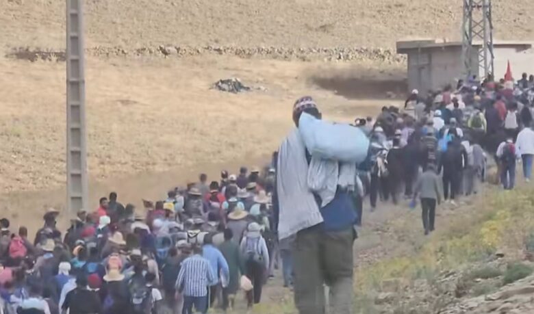 تحت شعار: “سلمية سلمية .. لا حجرة لا جنوية” خرجت المئات من ساكنة منطقة أيت بوكماز، يوم الأربعاء 9 يوليوز 2025، في مسيرة احتجاجية بإتجاه ولاية جهة بني ملال خنيفرة، إحتجاجا على ما أسموه ب “تأخير وتعطيل التنمية في المنطقة”، واعتبارا لما تعانيه تلك المناطق النائية والجبلية بطبيعتها وتضاريسها لعقود مضت من إقصاء وتهميش وغياب للعدالة المجالية.
