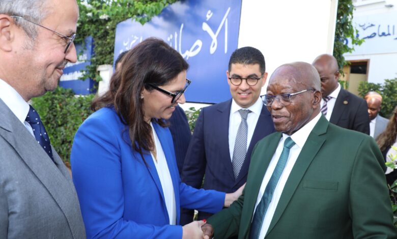 استقبلت قيادة حزب الأصالة والمعاصرة صباح اليوم الخميس 17يوليوز، بالرباط، الرئيس السابق لجمهورية جنوب إفريقيا ورئيس حزب أومكونتو وي سيزوي جاكوب زوما والذي يقوم بزيارة عمل إلى المغرب بدعوة من حزب الأصالة والمعاصرة.