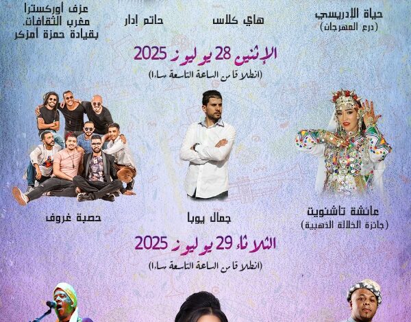 تحت الرعاية السامية لصاحب الجلالة الملك محمد السادس نصره الله، وفي إطار تخليد ذكرى عيد العرش المجيد، تنظم وزارة الشباب والثقافة والتواصل- قطاع الثقافة، بتعاون مع المجلس الوطني للموسيقى )العضو في المجلس الدولي للموسيقى-الشريك الرسمي لليونسكو( وبدعم من ولاية الرباط ـ سلاـ القنيطرة)، الدورة الثالثة عشر للمهرجان الدولي للفنون والثقافة “صيف الاوداية”، ما بين 27 و 30 يوليوز 2025، بكورنيش أبي رقراق بالعاصمة الرباط.