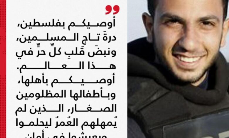 الاعلامي أنس الشريف..أوصيكم بفلسطين درةَ تاجِ المسلمين
