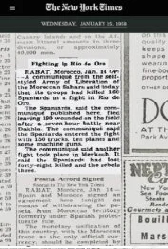 نيويورك تايمز” توثق معركة العركوب سنة 1958 بواد الذهب: دليل تاريخي دامغ على الكفاح المغربي لتحرير الصحراء قبل المسيرة الخضراء