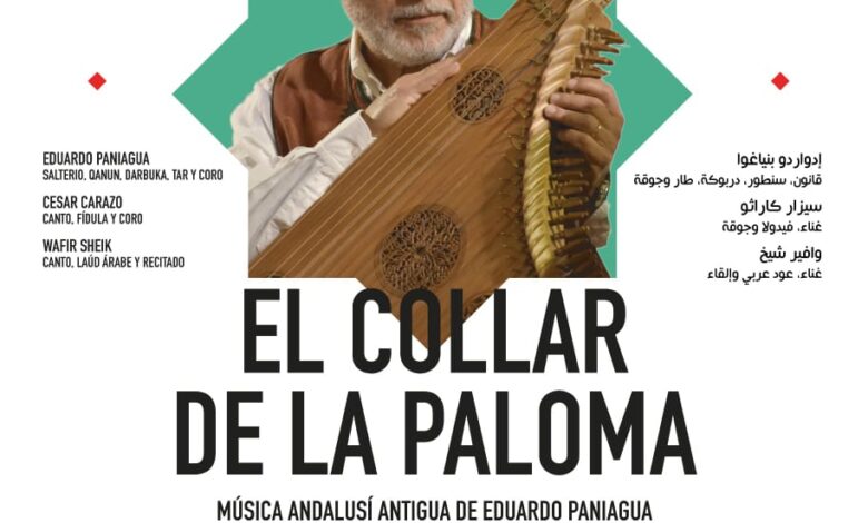 يواصل مسرح رياض السلطان برنامجه لشهر اكتوبر بحيويته المعهودة، ويسافر بنا، يوم الجمعة 10 أكتوبر على الساعة التاسعة مساءً، إلى عاالم الموسيقى الأندلسية العريقة بحفل طوق الحمامة ل: إدواردو بانيغوا عازف القانون، السانطور، دربوكة، طار وجوقة. سيزار كارثو، غناء، فيدولا وجوقة. وافير شيخ، غناء، عود عربي وإلقاء. بشراكة مع معهد سيرفانتيس.