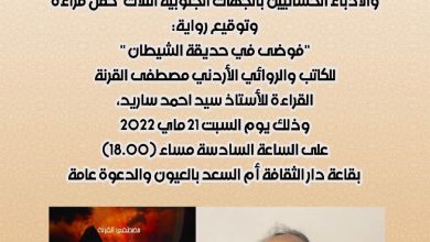 تنظم المديرية الجهوية لقطاع الثقافة بجهة العيون الساقية الحمراء، حفل قراءة وتوقيع كتاب “فوضى في حديقة الشيطان” للكاتب والروائي الأردني…