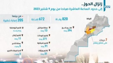 زلزال الحوز..820 حالة وفاة و672 إصابة منها 205 خطيرة
