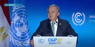 قال أنطونيو غوتيريش الأمين العام للأمم المتحدة، في افتتاح قمة المناخ بمصر، إن عقارب الساعة تتقدم، ونحن في حرب نخسرها…