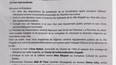 بقلم: حميد رزقي- صحافي وكاتب وجّه المعهد المغربي لحقوق الإنسان مراسلة رسمية إلى رئيس جماعة أكادير، يقترح من خلالها إطلاق…
