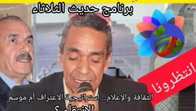 برنامج”حديث الثلاثاء”يعيد تسجيل الحلقة الختامية الأسبوع المقبل