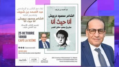 بيت الشعر يستضيف”بن شريف”ويكشف عن”الشاعر محمود درويش.. أنا حيث أنا”